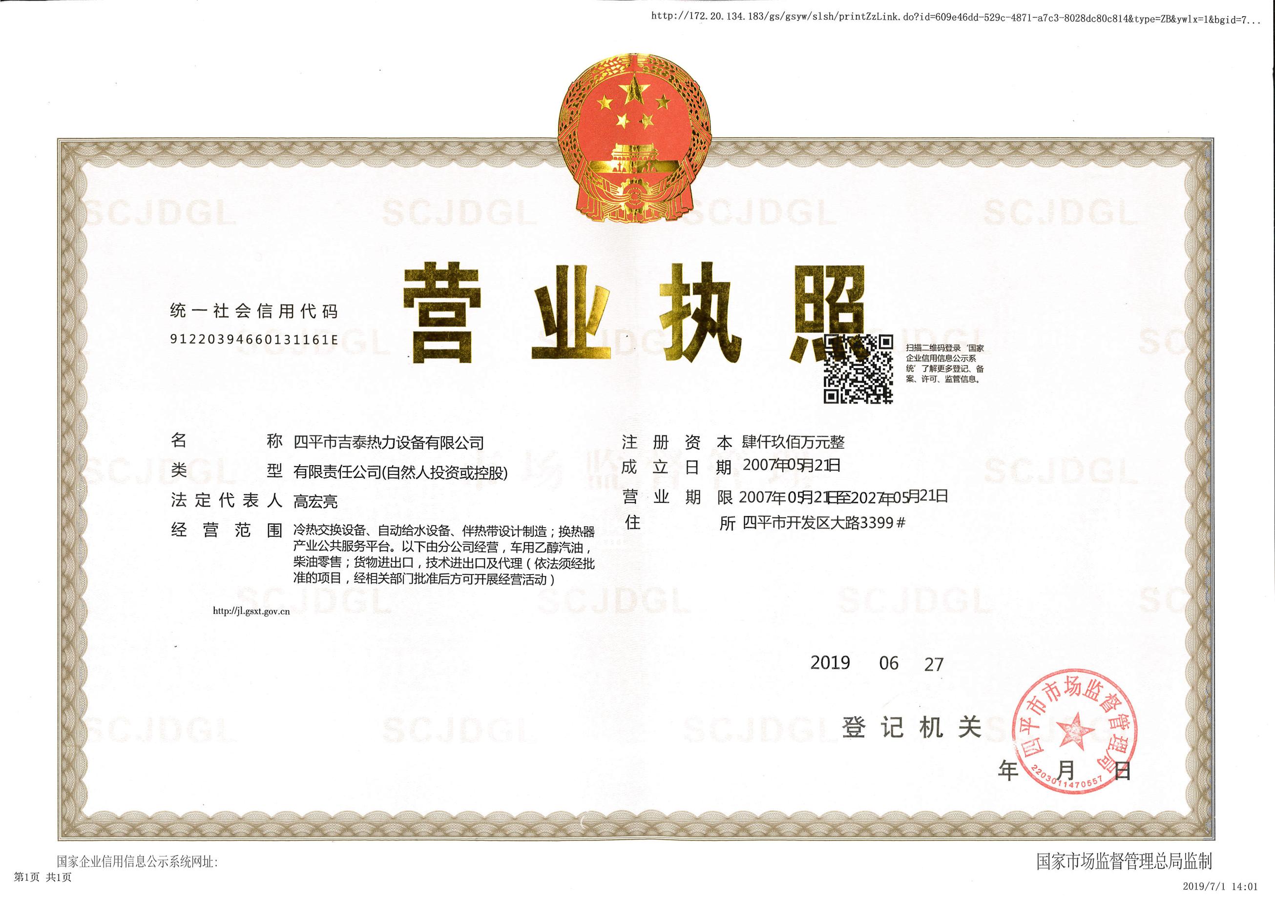 SIPING JITAI HEAT EXCHANGE EQUIPMENT CO.,LTD.